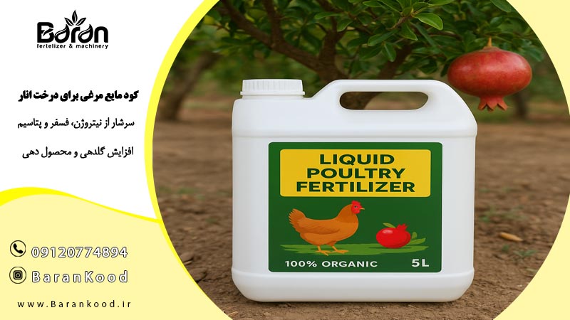 کود مایع مرغی برای درخت انار یکی از مؤثرترین و طبیعی‌ترین راه‌ها برای تغذیه و تقویت درخت انار است. این کود با داشتن ترکیبی کامل از عناصر اصلی و ریزمغذی‌ها، باعث رشد بهتر، باردهی بیشتر و کیفیت بالاتر میوه‌ها می‌شود.